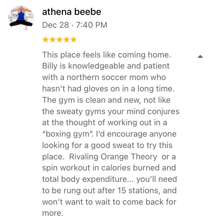 Equipment used includes: heavy bag, aqua bag, speed bag, double end bag, hand pads in the ring, and more.