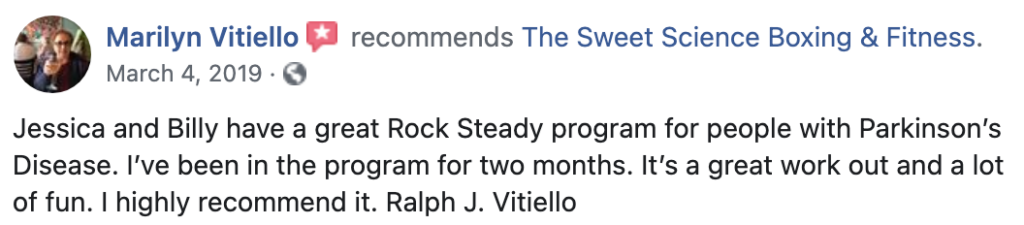 “Of all the pills I’ve taken, Rock Steady Boxing is the finest and most effective.” – Pete Stewart